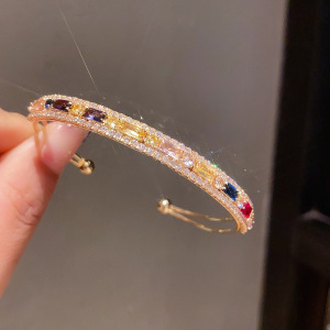 超闪锆石长方形双层开口手镯轻奢高级感手环时尚复古精致通勤手饰