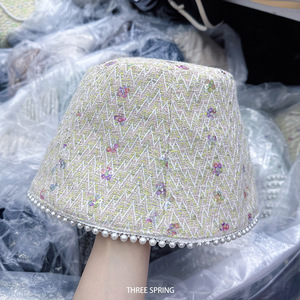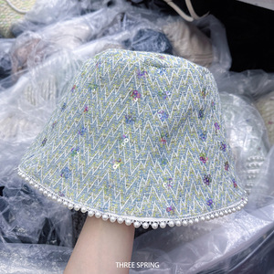 批发韩国2025年秋冬新款韩版ins花朵刺绣渔夫帽女小众印花盆帽潮