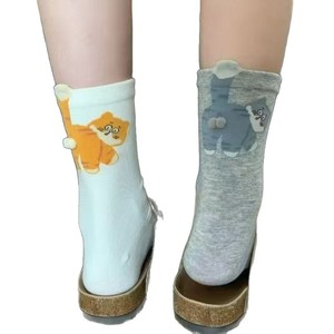 白色袜子男女款中筒袜夏秋薄款棉搞怪卡通灰色长袜可爱猫咪蛋蛋袜