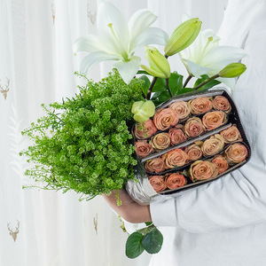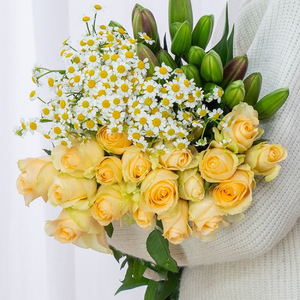 随机玫瑰20枝+百合5朵+洋甘菊3枝♜☆
