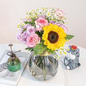 5枝随机玫瑰+1枝向日葵+3枝洋甘菊+3枝小雏菊♜☆