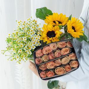 随机玫瑰20枝+向日葵3枝+洋甘菊3枝♜☆