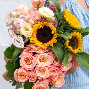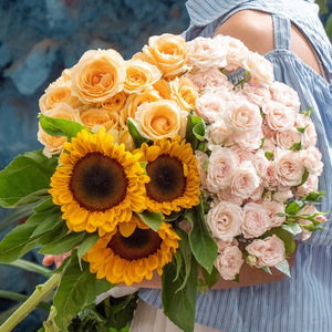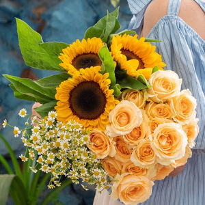 随机玫瑰20枝+向日葵3枝+洋桔梗10朵♜☆