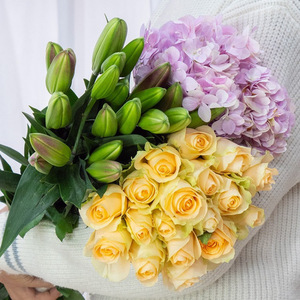 随机玫瑰20枝+随机百合5朵+绣球1枝♜☆