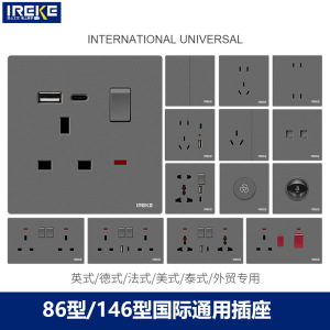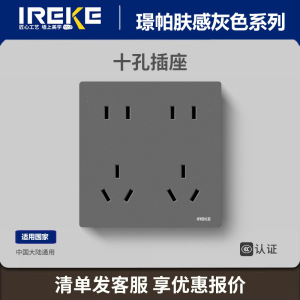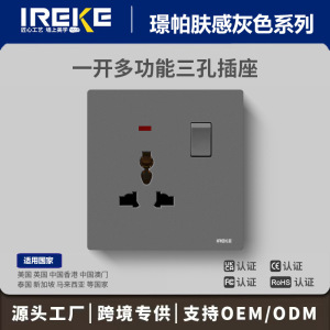86型肤感灰综合系列一开多五孔USB+TYPE-C开关插座家用大功率
