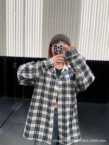 2025早秋新款mm6 优雅休闲 慵懒随性时髦感 阔型松弛感格子衬衫