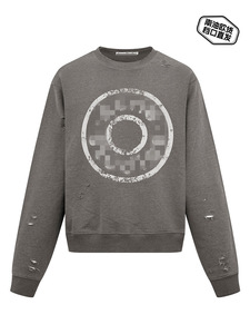 25南油AS破洞做旧徽标运动衫男女做旧磨损印花街头休闲毛圈布卫衣