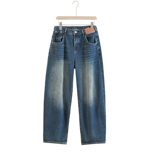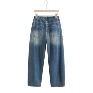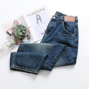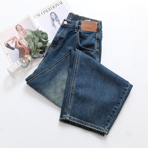 牛大侠200斤胖妹妹秋季新款简约遮肉牛仔弯刀裤大码休闲长裤7974