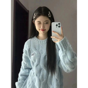 韩系软糯圆领毛衣女秋冬季奶宽松外穿慵懒风加厚针织麻花上衣