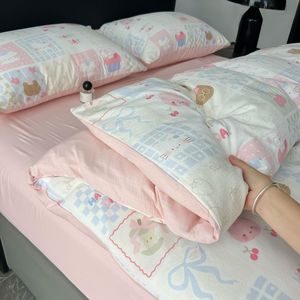 A类母婴级纯棉双层纱四件套ins少女心全棉学生宿舍被套三件套床笠