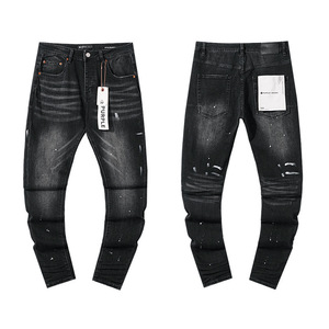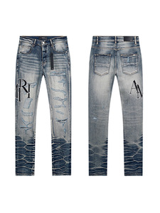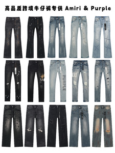 高品质PURPLE&AMIRI牛仔裤美式Jeans高街破洞补丁嘻哈直筒长裤男