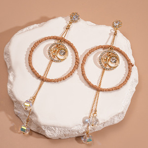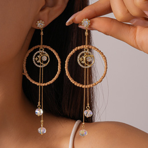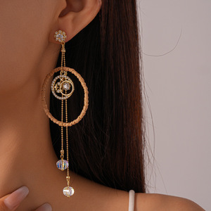 欧美锆石玻璃镂空几何圆形流苏银针耳环度假风夸张小众高级感耳饰