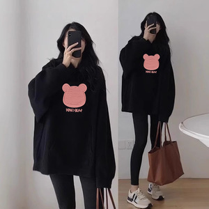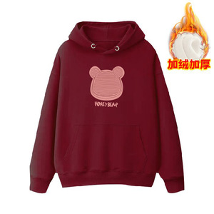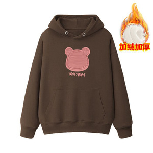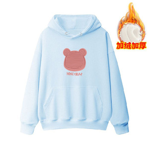 跨境外贸美式oversize时尚卡通连帽卫衣女秋冬加绒加厚慵懒风外套