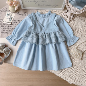 女童韩系套装春秋季新款女宝宝洋气衬衫裙吊带背心两件套AQB032