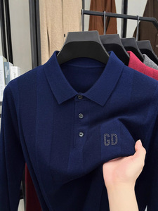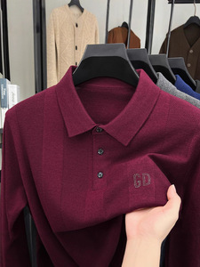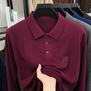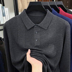 含羊毛针织衫长袖男士薄款毛衣秋季新款翻领中年爸爸打底上衣男装