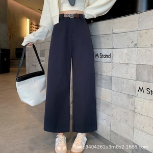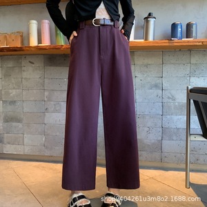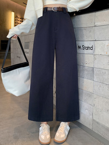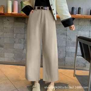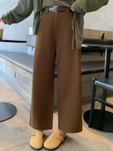 咖啡色水洗棉阔腿裤女九分秋冬季新款宽松显瘦小个子直筒休闲裤子