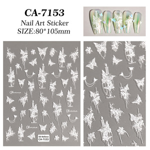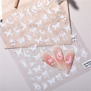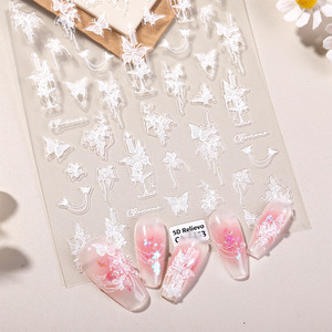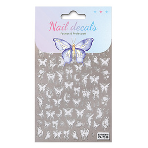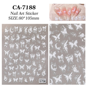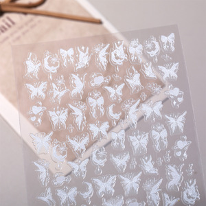 白色仙气蝴蝶美甲贴纸5D浮雕立体纯洁星月蝴蝶指甲贴纸饰品 CA款