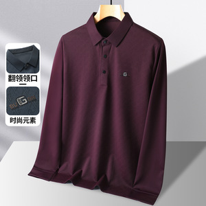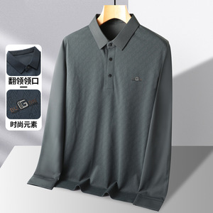 2025新款爸爸秋装翻领t恤长袖春秋季男士打底polo衫中老年人衣服
