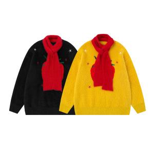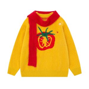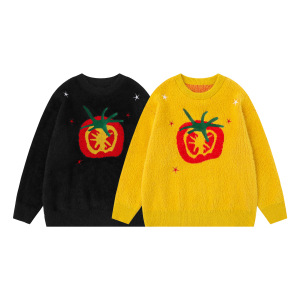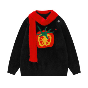 美式复古番茄图案提花设计围巾毛衣男女秋冬百搭设计感针织衫上衣
