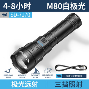 微笑鲨多功能户外照明高亮手电筒尾部大泛光可变焦红光警示超轻可