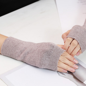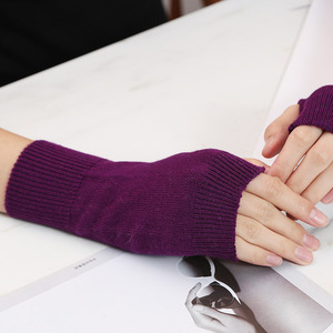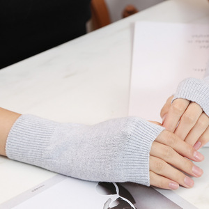 羊绒半指手套女冬短款保暖针织护腕男羊毛线漏露手指学生打字防寒