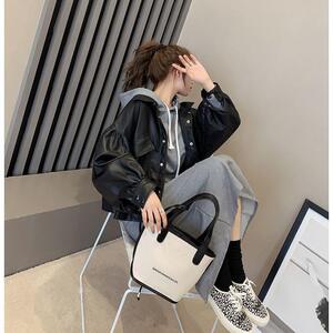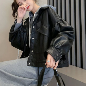 皮衣外套女新款衬衫领抽绳机车服时尚宽松皮夹克韩系上衣女装