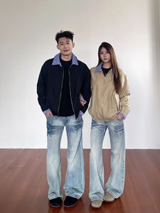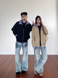 2025秋季新款miu系卡其色哈灵顿复古假两件学院风夹克情侣外套女