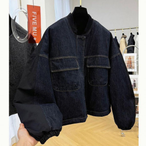 韩系独特别致超好看休闲拼接夹棉牛仔外套女秋冬宽松短款棉衣夹克