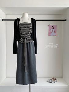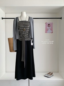 2025新款早秋气质绑带背心+慵懒防晒开衫+A字休闲半身裙三件套