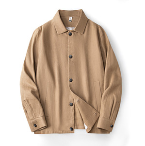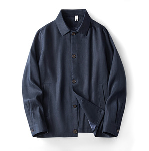 9支雨露亚麻春秋款加衬男士翻领老钱风外套休闲宽松简约长袖春秋