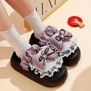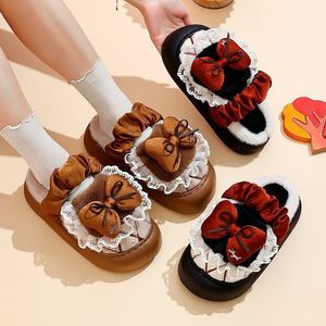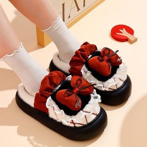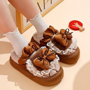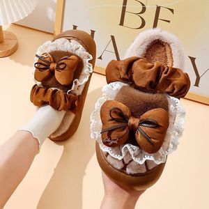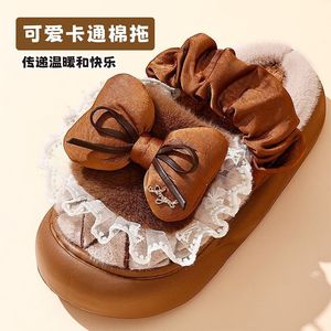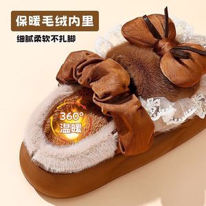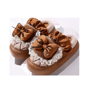 蝴蝶结女士棉拖鞋秋冬室内家居防滑保暖加绒毛毛棉鞋女款冬季拖鞋