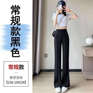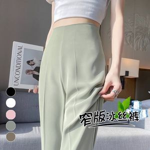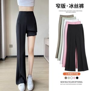夏季新款冰丝西装裤侧拉链直筒薄款微喇高腰显瘦窄版垂感多巴胺女