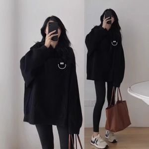 秋冬新款2025加绒加厚连帽卫衣女宽松韩版中长款休闲慵懒风外套
