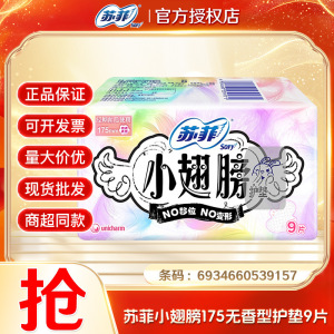 苏菲小翅膀护垫175mm9片 箱规:36包 条码:6934660539157
