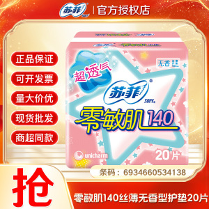 苏菲零敏肌护垫140mm20片 箱规:36包 条码:6934660534138