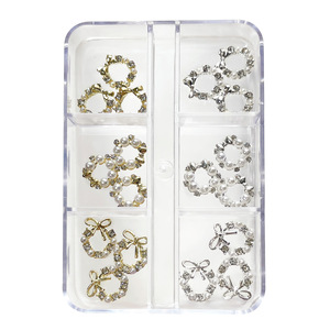 6格圣诞花环美甲饰品套装跨境爆款立体合金镶钻珍珠diy穿戴指甲钻
