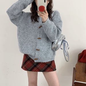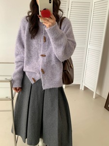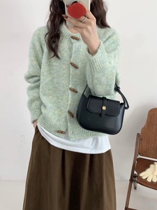 艾蜜朵学院风牛角扣软糯舒适韩系宽松慵懒风毛衣外套针织开衫女