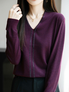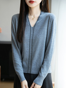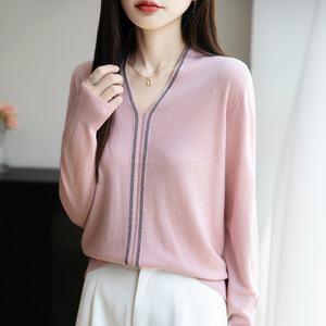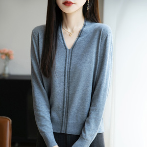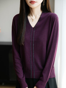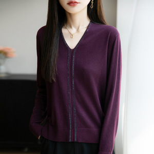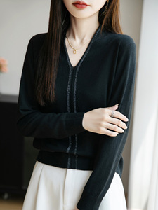 2025新款网红爆款高级感V领烫钻套头宽松薄款羊毛针织衫打底衫女