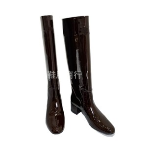 高端品质2025秋冬真皮圆头复古粗高跟显瘦不过膝长靴高筒时装靴女