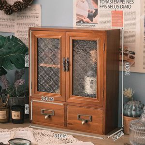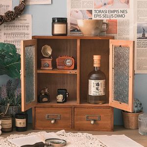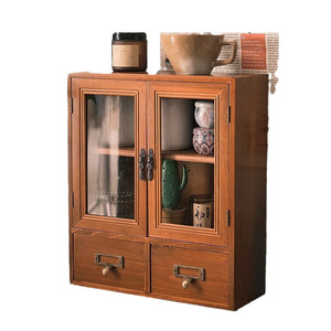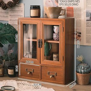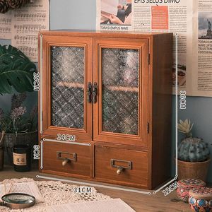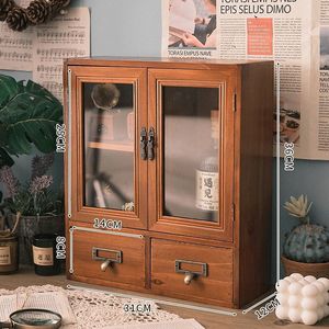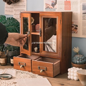 盲盒柜桌上收纳柜梳妆台香水置物架办公桌复古木质桌面收纳整理盒