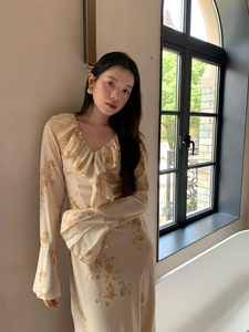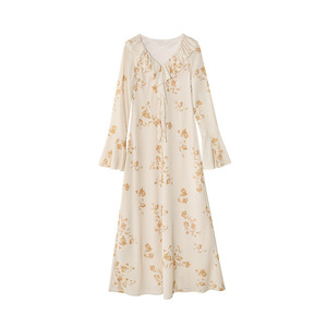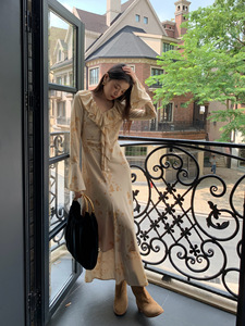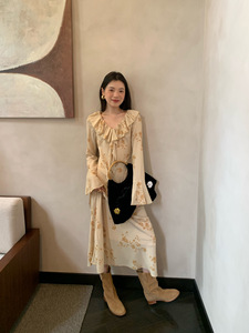 诠释美 NEWOPEN 25秋法式度假甜美喇叭袖荷叶边碎花连衣裙女F6565