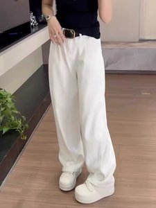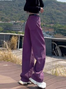 复古弯刀牛仔裤女春秋大码胖mm梨形身材宽松高腰显瘦直筒阔腿裤子