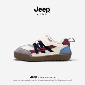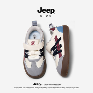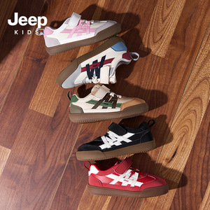 Jeep儿童运动鞋男童低帮皮面板鞋2025秋季新款男女童户外德训休闲