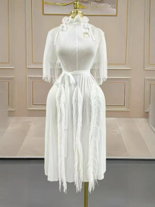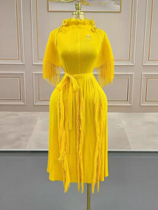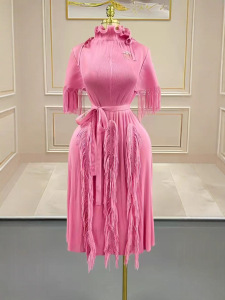 Miyake2025新款欧美亚马逊抽绳流苏三宅时尚褶皱休闲女装连衣裙