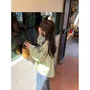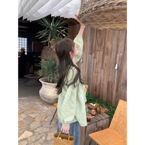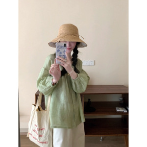 青绿苎麻天丝娃娃衫衬衫宽松轻薄透气显白纯色清新