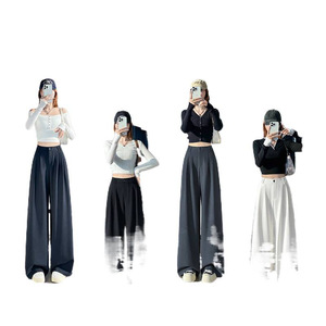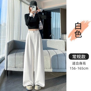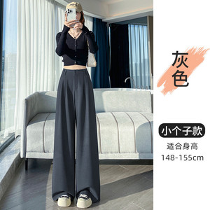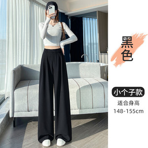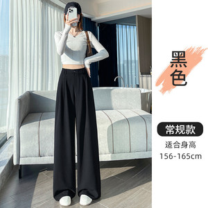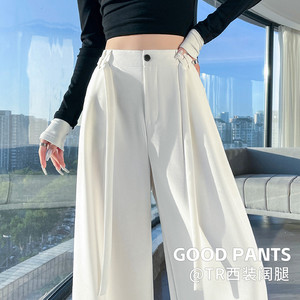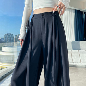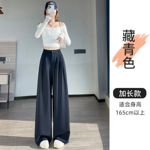 藏青色西装阔腿裤女秋2025新款绑带高级感垂感压褶窄版直筒拖地裤