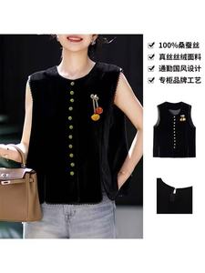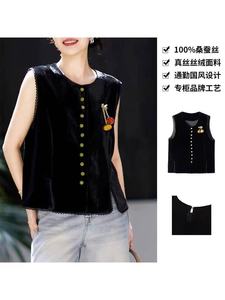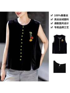 黑色真丝丝绒马甲女2025秋季新新中式国风复古坎肩上衣国潮