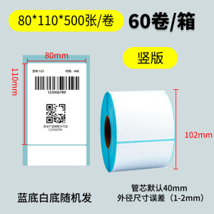 (优质款)热敏102*152*500张单排竖版(蓝/白底随机发)