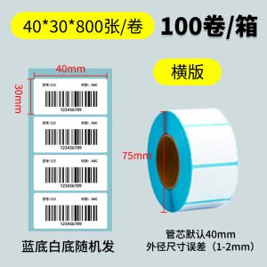 (特价款)热敏40*30*800张单排横版(蓝/白底随机发)