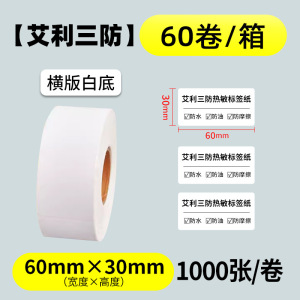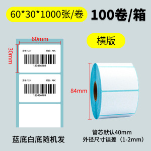 三防热敏60*30*1000张单排横版(蓝/白底随机发)
